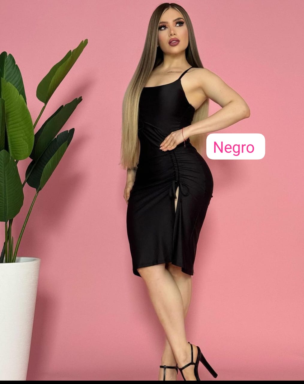 - Detalle Fruncido Moderno: El innovador fruncido lateral con cordón ajustable no solo añade un toque de tendencia, sino que también permite estilizar la caída y el largo del vestido a tu gusto, creando un efecto drapeado sofisticado.